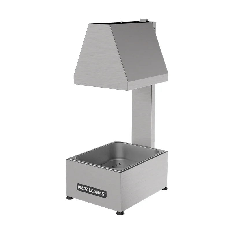 - 1 lâmpada de aquecimento infravermelha de secagem; - Produzido externamente em aço inox 430 escovado; - Produzido internamente em aço inox 304; - Uma cuba padrão GN 1/2 x 100 mm de profundidade; - Capacidade de 1 Kg por cuba de alimento. |