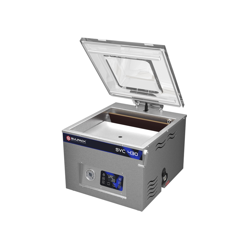 - Revestimento interno e externo em aço inox escovado; - Controles digitais: Tempo de vácuo, solda, troca de óleo e contagem do número de processos; - Tampa plana em acrílico translúcido; - Mesa niveladora em aço inox com regulagem de altura, utilizada conforme o volume do produto embalado; - Barramento duplo; |